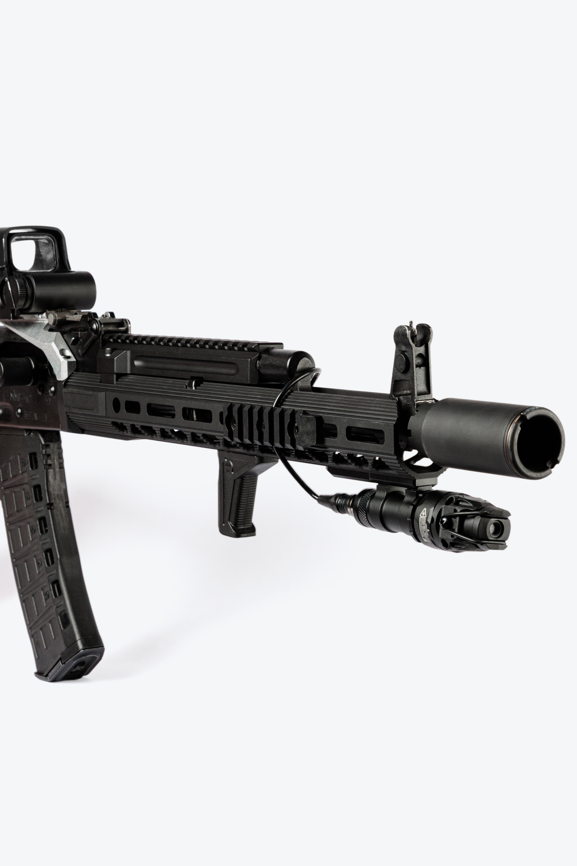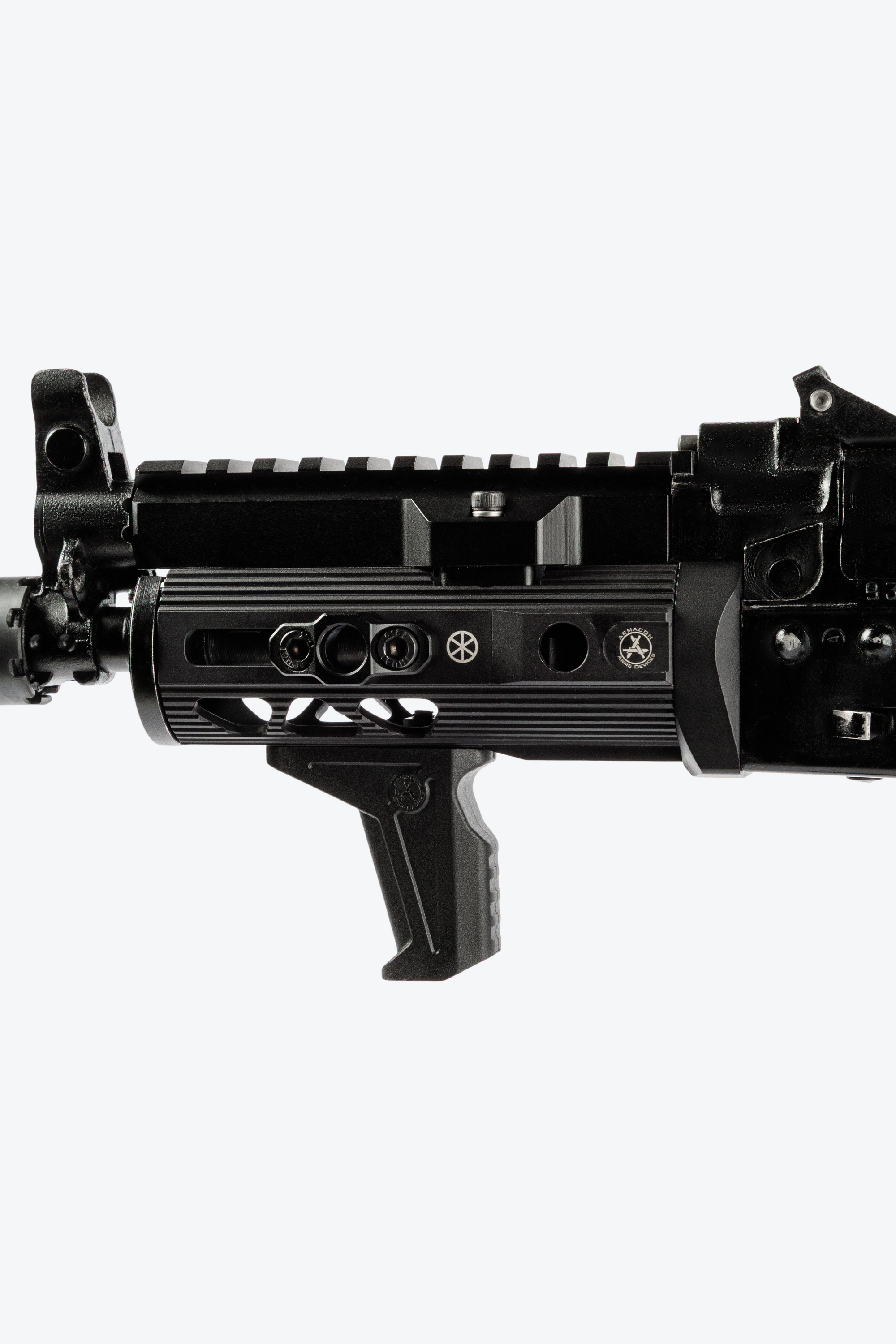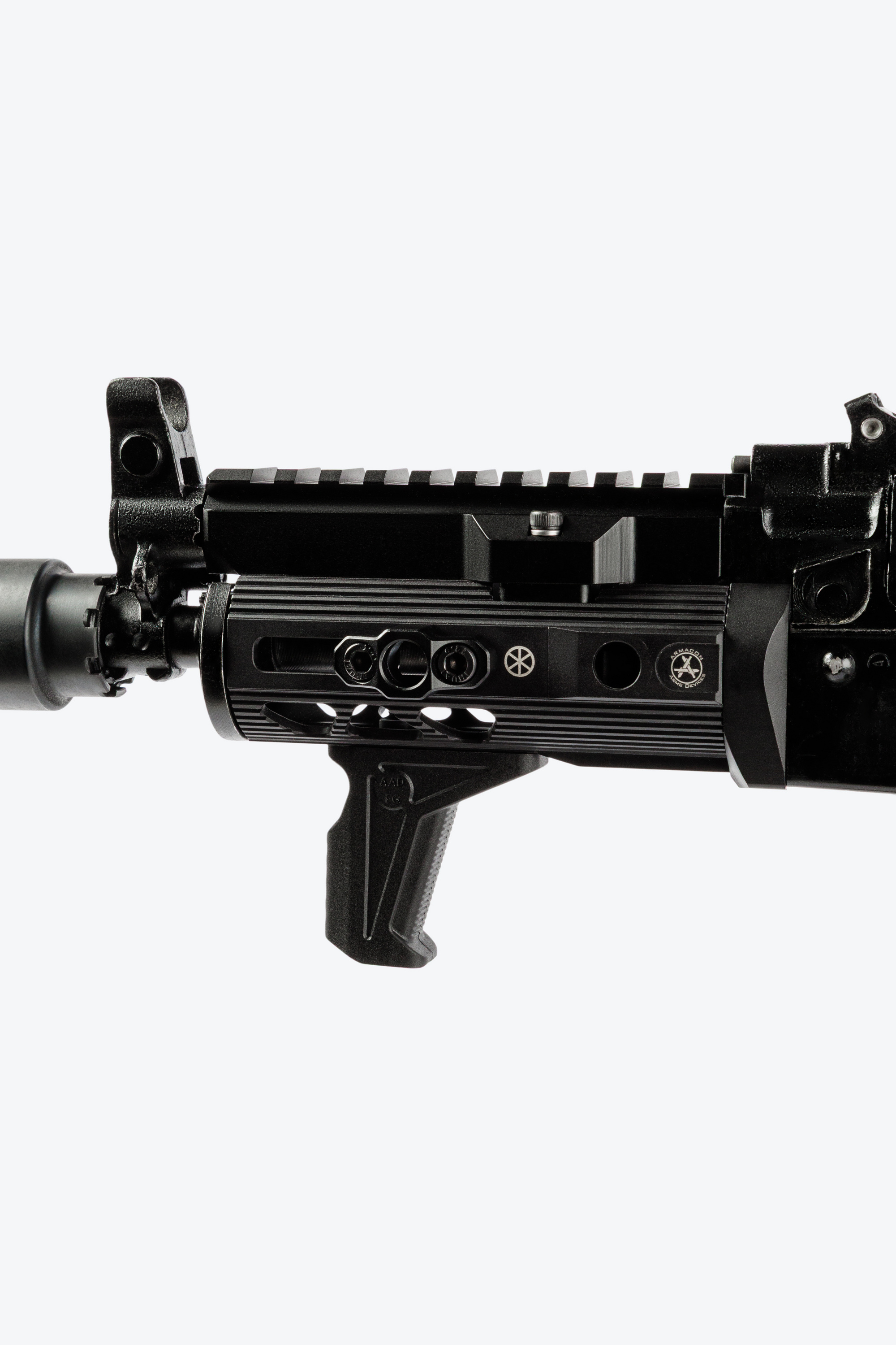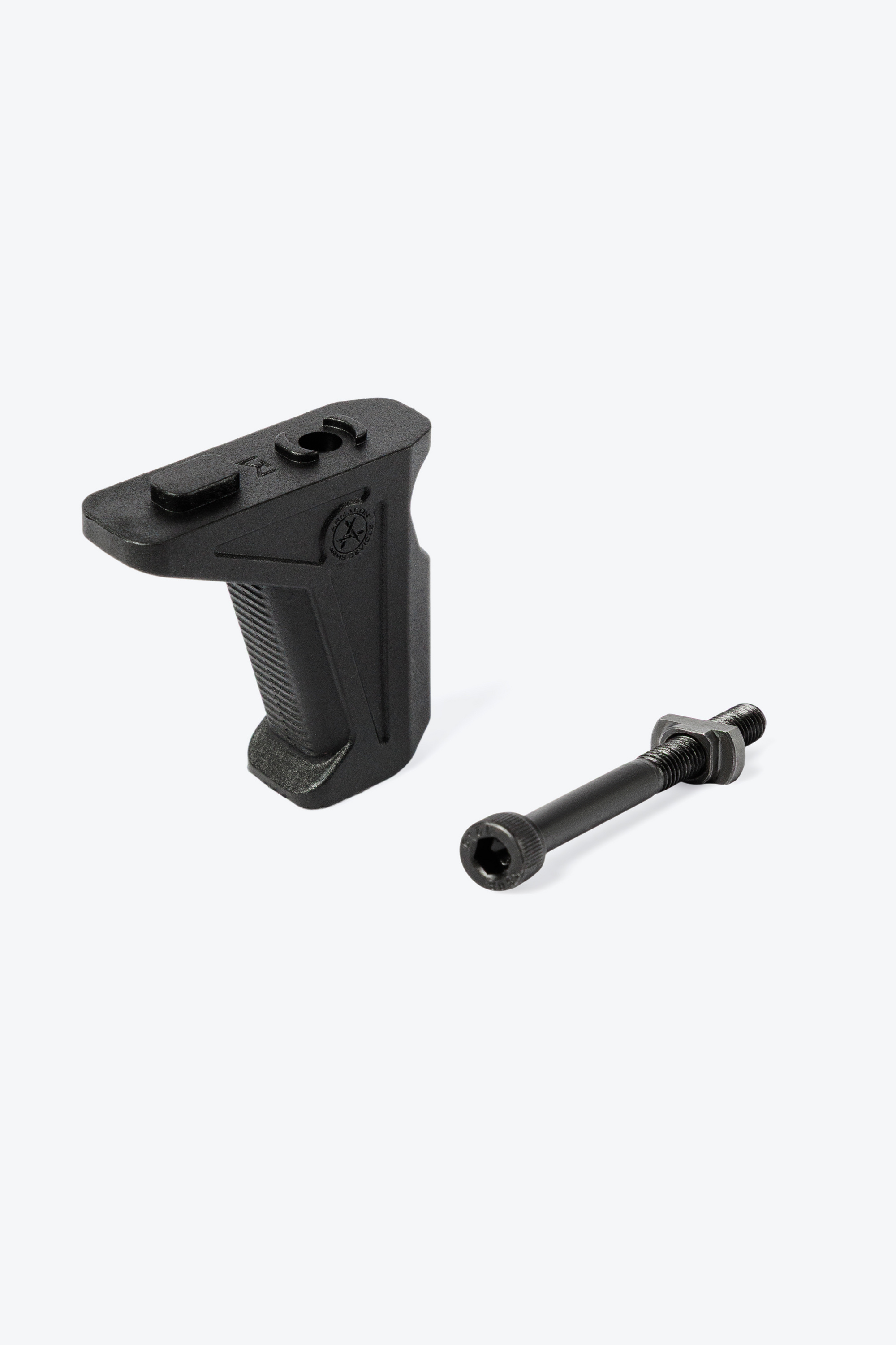 Передняя рукоятка упор помогает стрелку получить дополнительный контроль над оружием. Текстурированные передние и задние области для пальцев для лучшего удержания. Выполнена из стеклонаполненного полиамида литьём под давлением. Занимает всего одну ячейку М-лок (M-LOK). Поставляется в комплекте с крепежом. Можно использовать в качестве баррикадного упора.